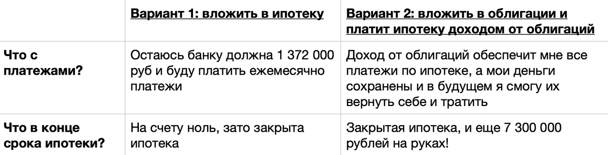 В итоге мои деньги остались при мне, они приумножаются и ежемесячно гасят ипотеку. В конце срока облигаций я получу 2 квартиры и +3 900 000 рублей сверху!
